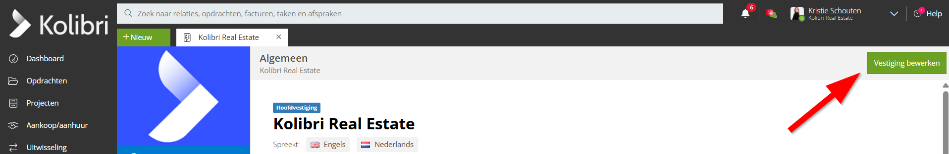 Klik vervolgens nogmaals op Vestiging bewerken: