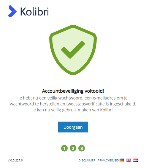 Als je de beveiligingscode verstuurd hebt krijg je daarvan een bevestiging en kun je vanaf nu veilig gebruik maken van Kolibri.