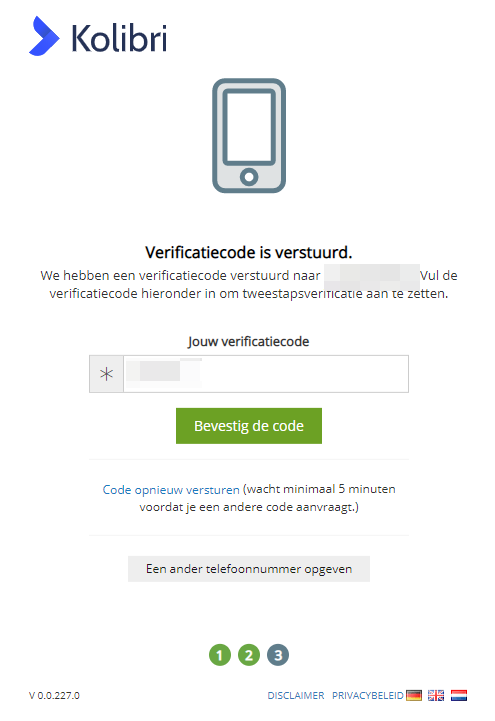 Als je de code via SMS ontvangen hebt kun je die nu invoeren om hem te bevestigen.