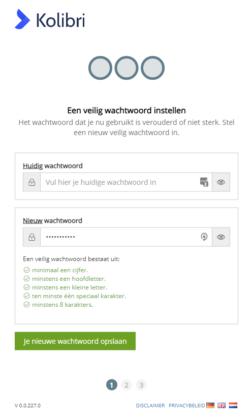 Om er zeker van te zijn dat je veilig gebruik kunt maken van Kolibri vragen we bij de eerste keer dat je inlogt om een nieuw, veilig wachtwoord in te stellen. Inloggen doe je via:
