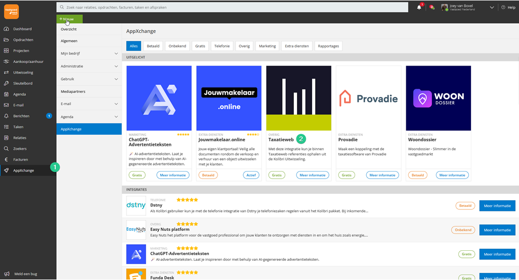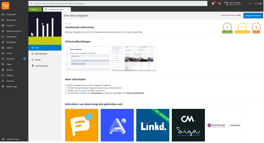 vind je de Taxatieweb integratie onder de uitgelichte integraties, en