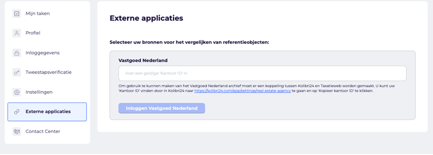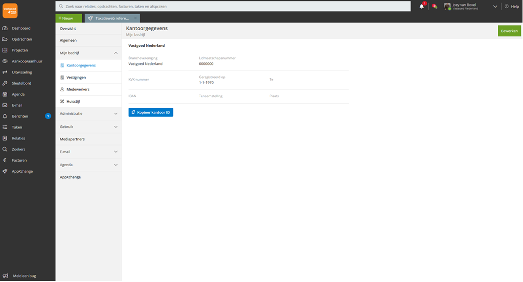 Kantoor ID. Dit ID heb je in de volgende stap nodig in Taxatieweb.
