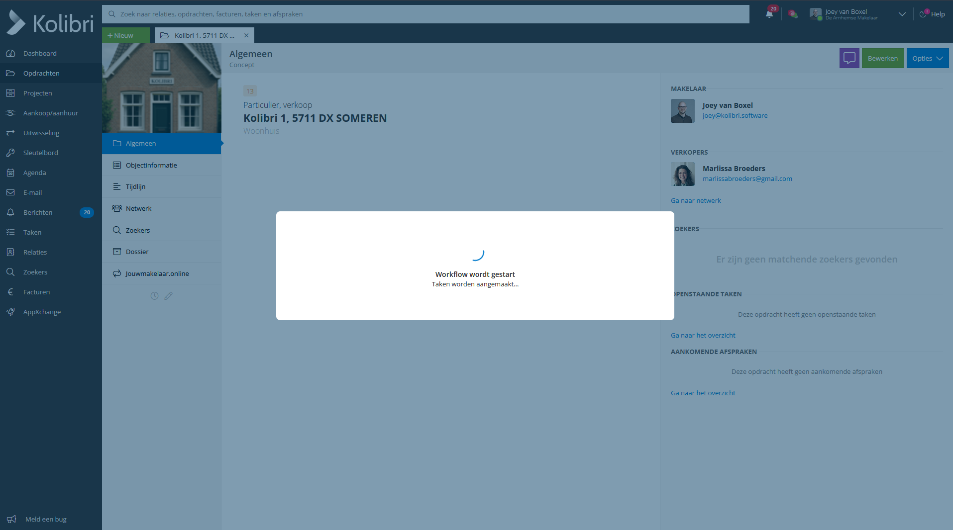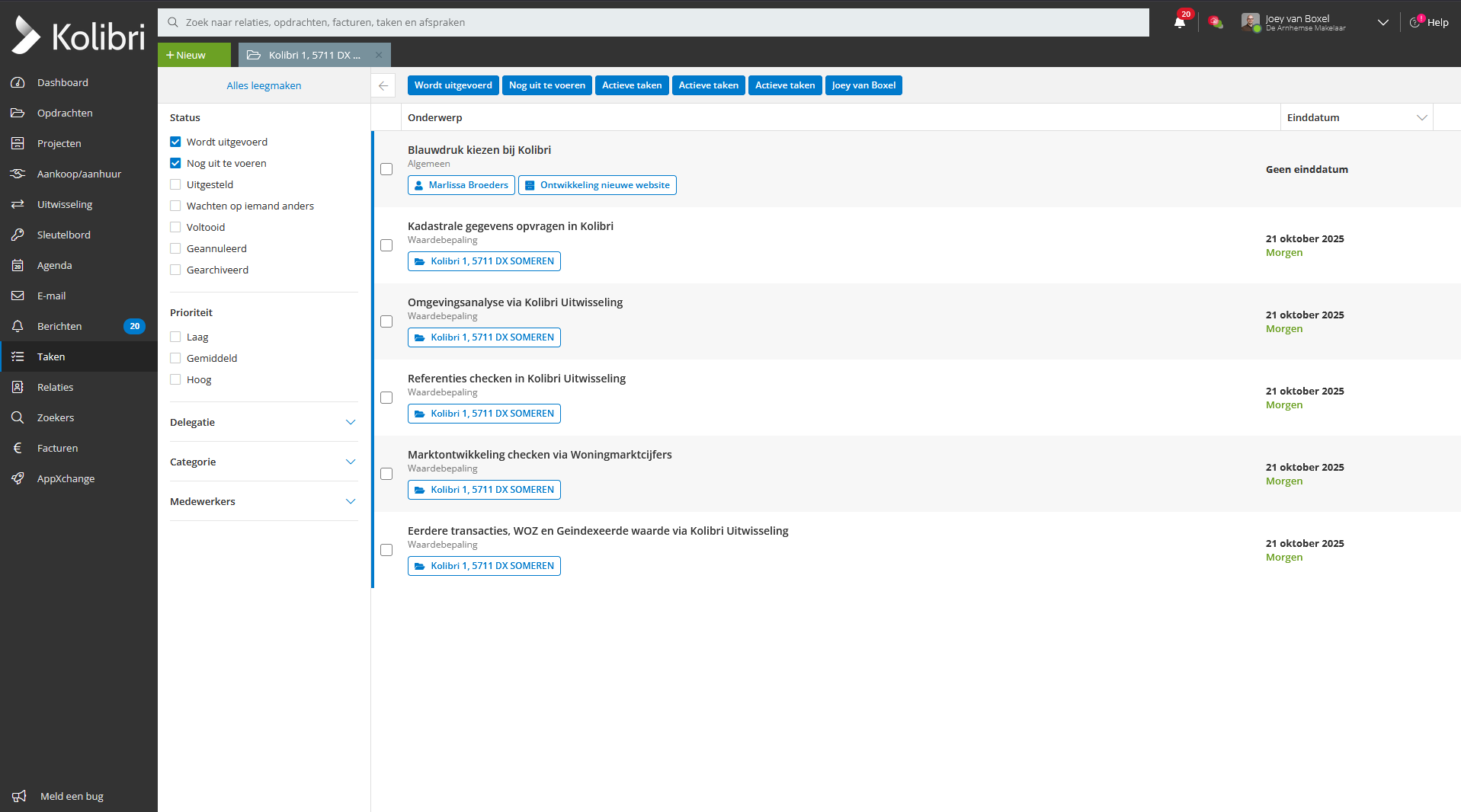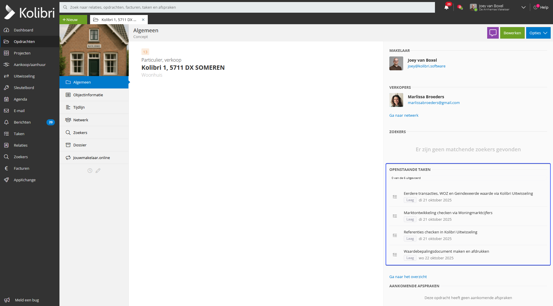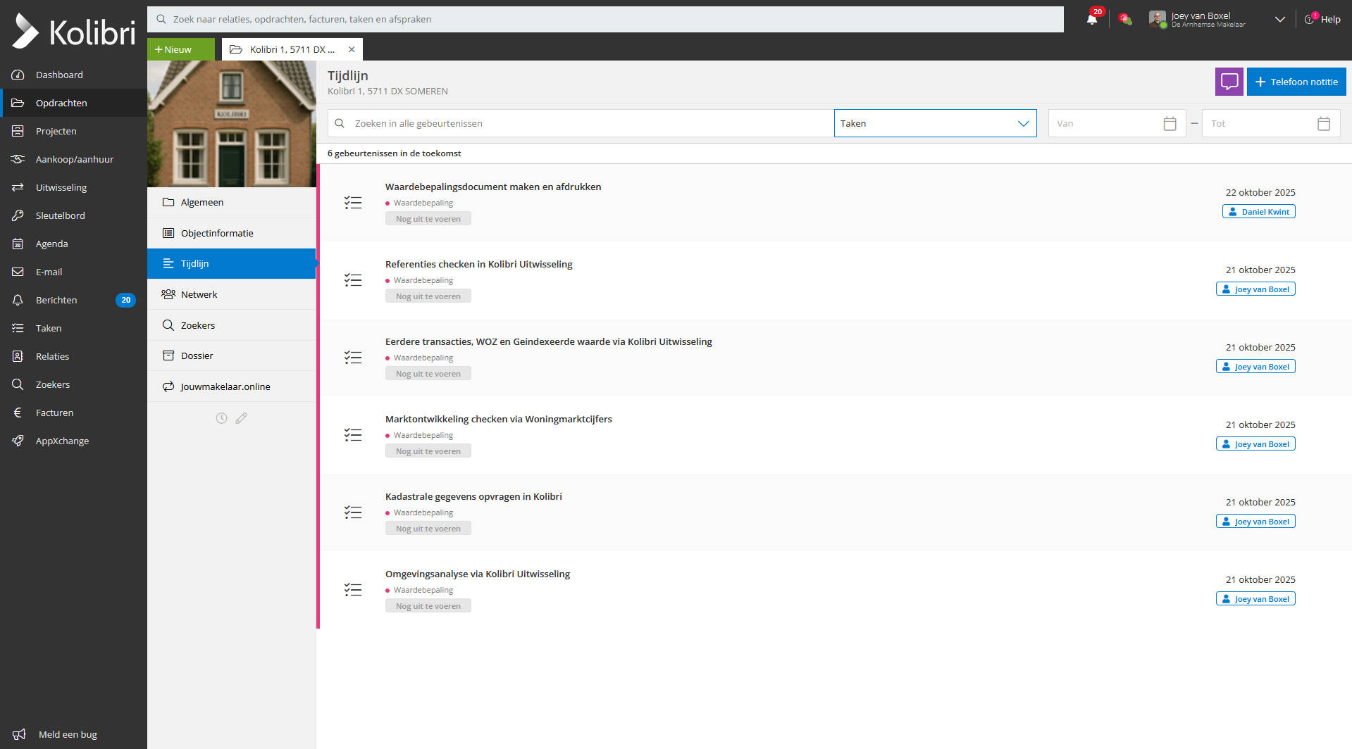 De taken vind je terug zoals je dat gewend bent binnen Kolibri. Je vindt de taken onder andere terug bij de openstaande taken bij het object: