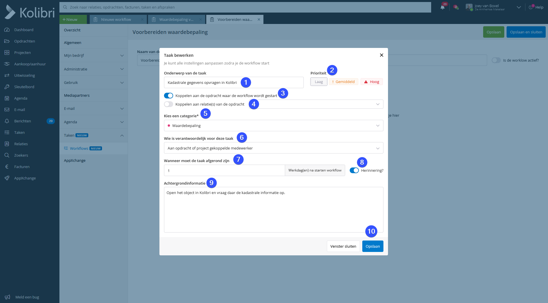 Met workflows maak je vaste takenlijsten aan die je kunt gebruiken binnen je dossiers in Kolibri. Zo werk je altijd volgens een vaste structuur, zonder dat je voor elk dossier handmatige alle taken hoeft aan te maken.