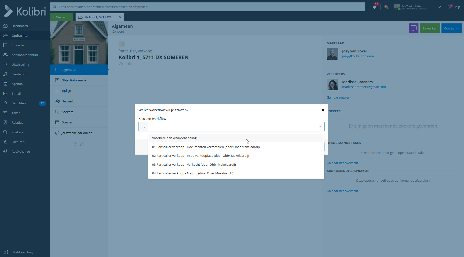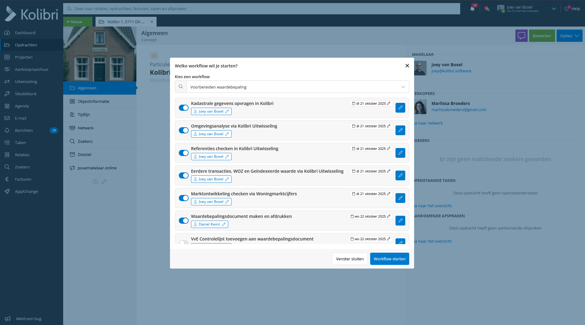 4) Je kan de taak automatisch koppelen aan bepaalde rollen in het netwerk van de opdracht, zoals de taxateur, notaris, verkopers en kopers.